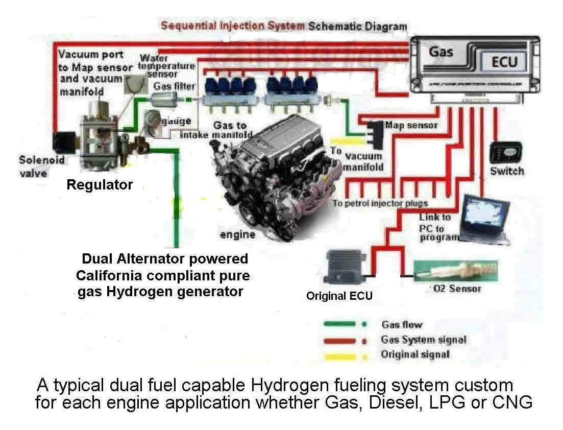 There are other factors involved such as a buffer tank, a second fuel injunction system and that is piggy backed on the vehicle ECM , and a special oxygen sensor setup.